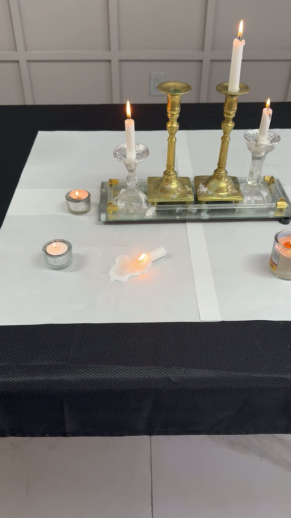 A burning candle fell on his table.